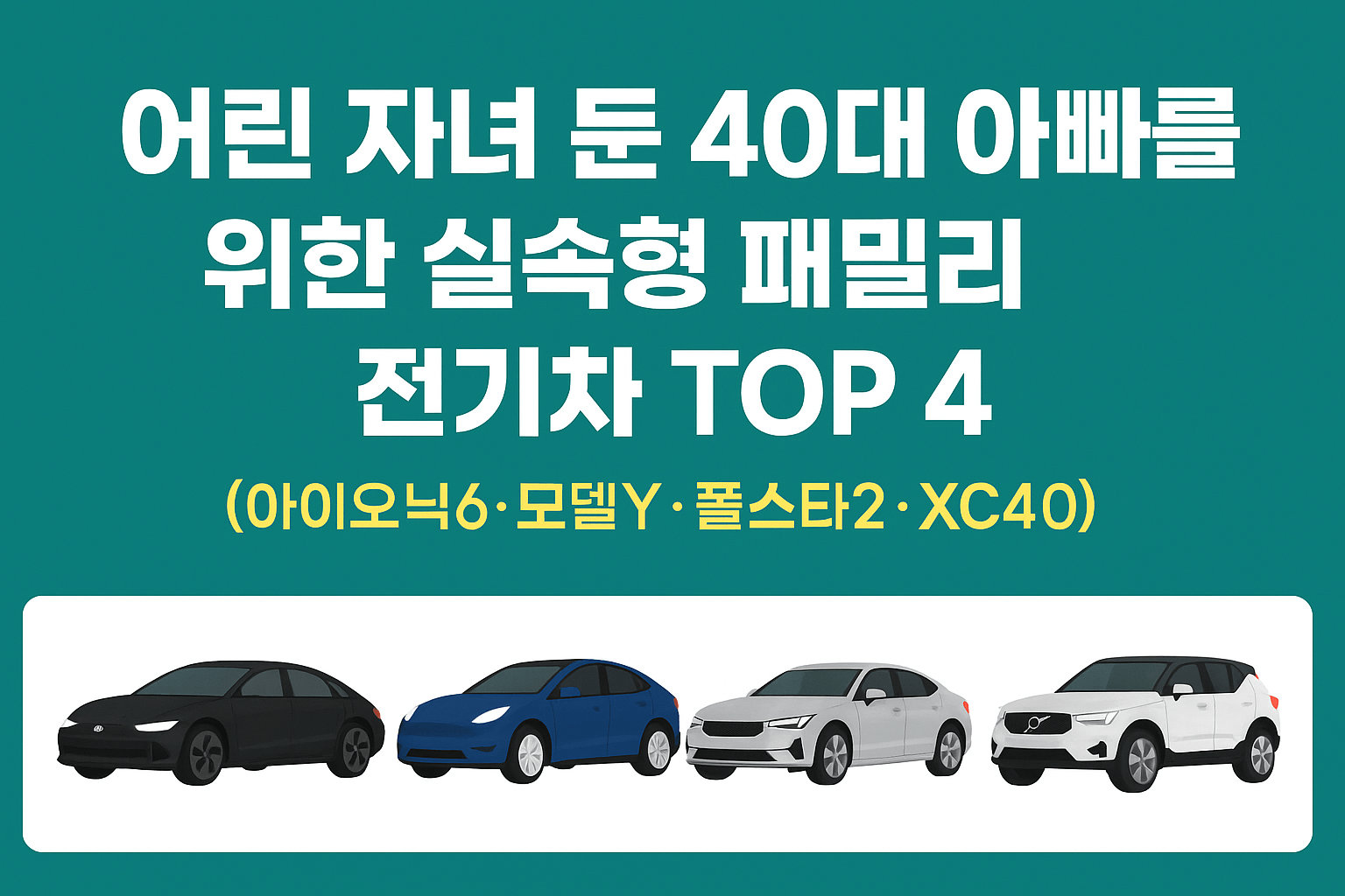 어린 자녀 둔 40대 아빠를 위한 실속형 패밀리 전기차 TOP 4 (아이오닉6·모델Y·폴스타2·XC40)